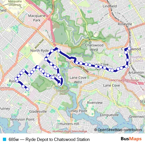 Bus 685w - Ryde Depot to Chatswood Station in Sydney: Stops & Timetable