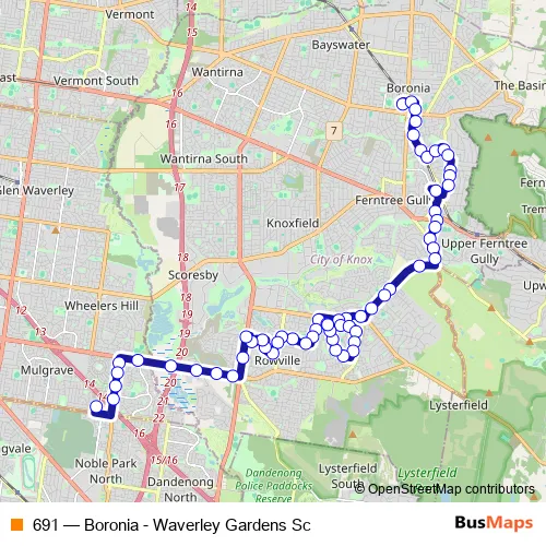 Bus 691 - Boronia - Waverley Gardens Sc in Burwood: Stops & Timetable