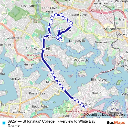 Bus 692w - St Ignatius' College, Riverview to White Bay, Rozelle in Sydney: Stops & Timetable
