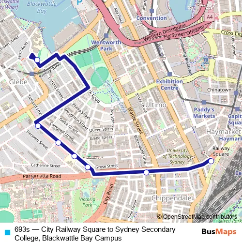 Click here to view the nearest 693s - City Railway Square to Sydney Secondary College, Blackwattle Bay Campus bus stop.
