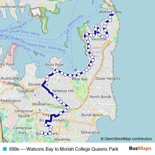Bus 699e - Watsons Bay to Moriah College Queens Park: Full Schedule in Sydney