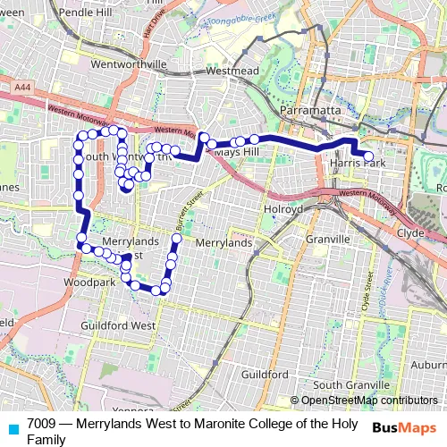 Bus 7009 - Merrylands West to Maronite College of the Holy Family in Parramatta: Stops & Timetable