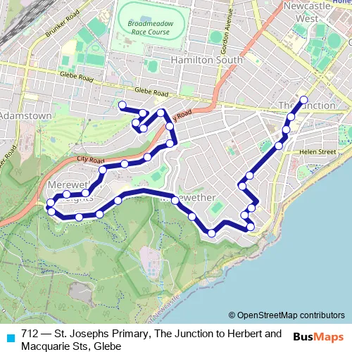 The first stop of the 712 bus route is Union St Opp St Joseph's Primary School and the last stop is Henderson Park, James St. 712 (St. Josephs Primary, The Junction to Herbert and Macquarie Sts, Glebe) is operational during on weekdays.