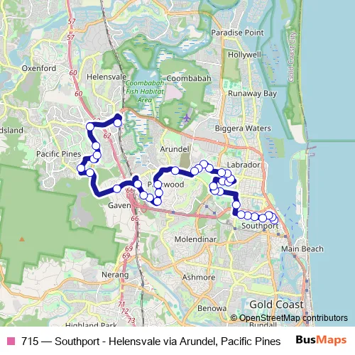 Bus 715 - Southport - Helensvale via Arundel, Pacific Pines Schedule in Gold Coast
