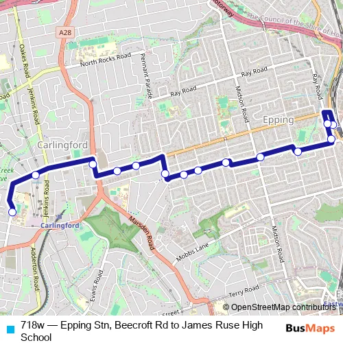 Click here to view the nearest 718w - Epping Stn, Beecroft Rd to James Ruse High School bus stop.
