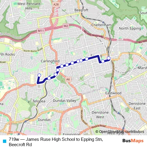 Click here to view the nearest 719w - James Ruse High School to Epping Stn, Beecroft Rd bus stop.