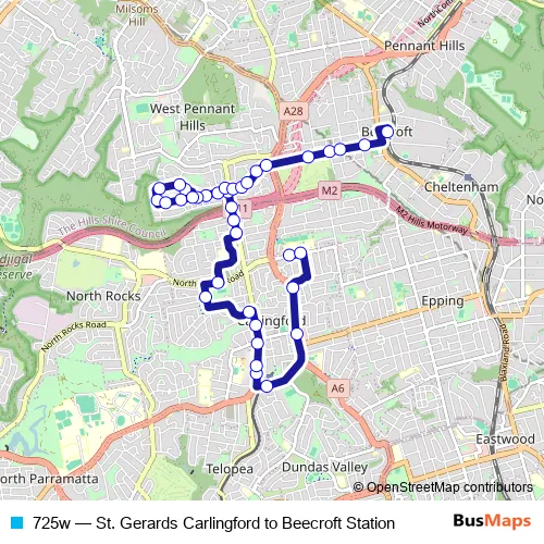 Click here to view the nearest 725w - St. Gerards Carlingford to Beecroft Station bus stop.
