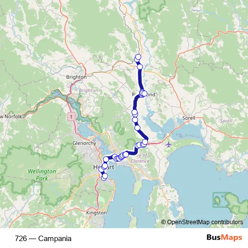 Bus 726 - Campania: Full Schedule in Hobart