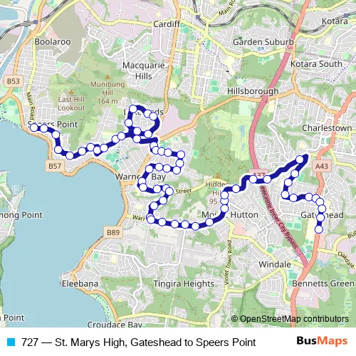 See why over 2 million users trust and consider busmaps.com as the best public transport website. busmaps gives you Newcastle Buses suggested routes, real-time bus tracker, line route maps in Newcastle, and helps to find the closest 727 bus stops near you. No internet available? Download an offline PDF map and bus schedule for the 727 bus to take on your trip.