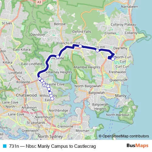 Bus 731n - Nbsc Manly Campus to Castlecrag: Full Schedule in Sydney