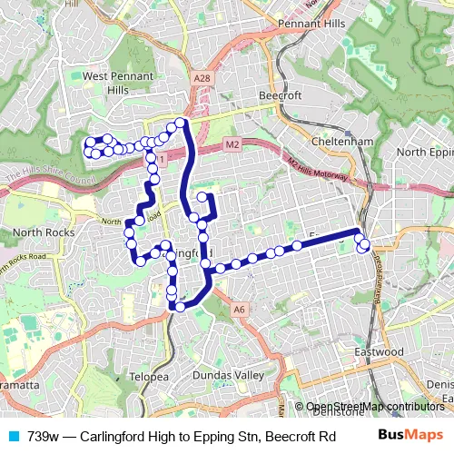 Click here to view the nearest 739w - Carlingford High to Epping Stn, Beecroft Rd bus stop.