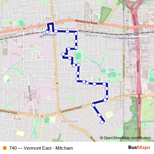 Bus 740 - Vermont East - Mitcham: Full Schedule in Melbourne