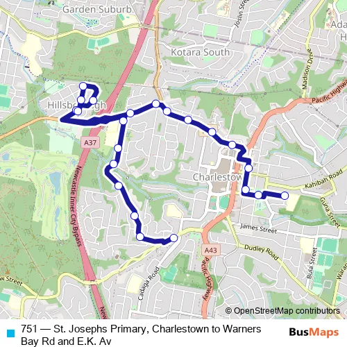 Click here to view the nearest 751 - St. Josephs Primary, Charlestown to Warners Bay Rd and E.K. Av bus stop.