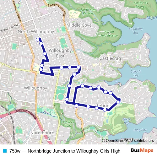 Click here to view the nearest 753w - Northbridge Junction to Willoughby Girls High bus stop.