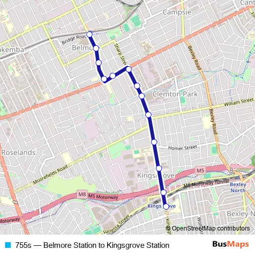 Bus 755s - Belmore Station to Kingsgrove Station in Sydney: Stops & Timetable