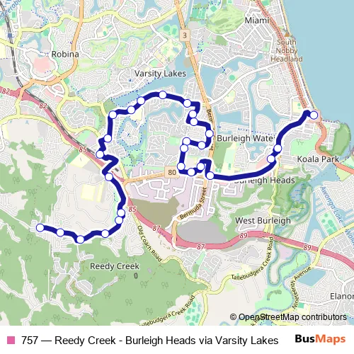 Click here to view the nearest 757 - Reedy Creek - Burleigh Heads via Varsity Lakes bus stop.