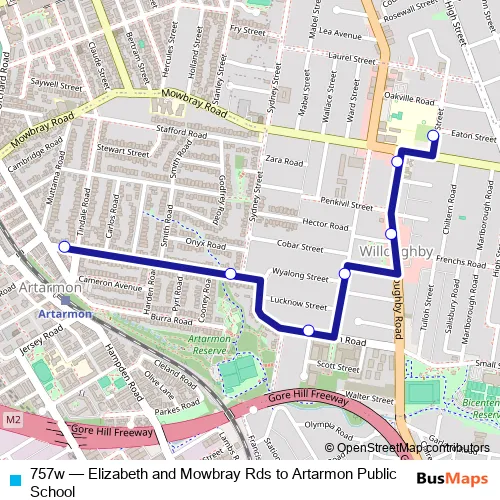 Bus 757w - Elizabeth and Mowbray Rds to Artarmon Public School Schedule in Sydney