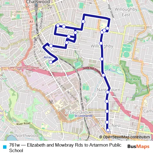 Click here to view the nearest 761w - Elizabeth and Mowbray Rds to Artarmon Public School bus stop.