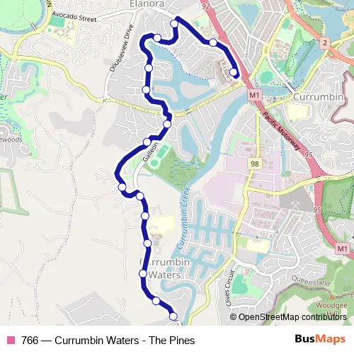 Bus 766 - Currumbin Waters - The Pines in Currumbin: Stops & Timetable