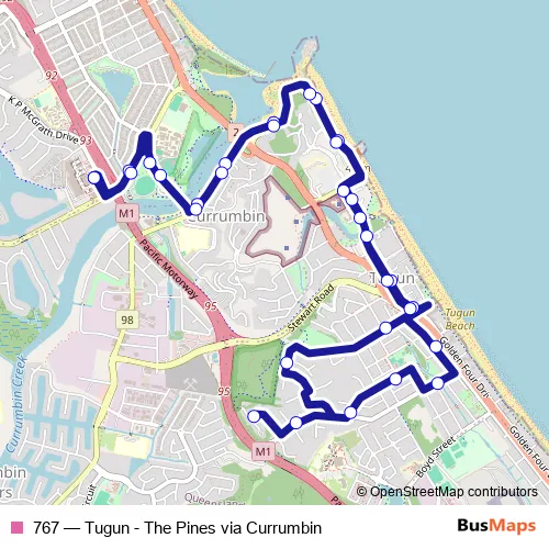 Bus 767 - Tugun - The Pines via Currumbin Schedule in Currumbin