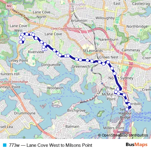 Click here to view the nearest 773w - Lane Cove West to Milsons Point bus stop.