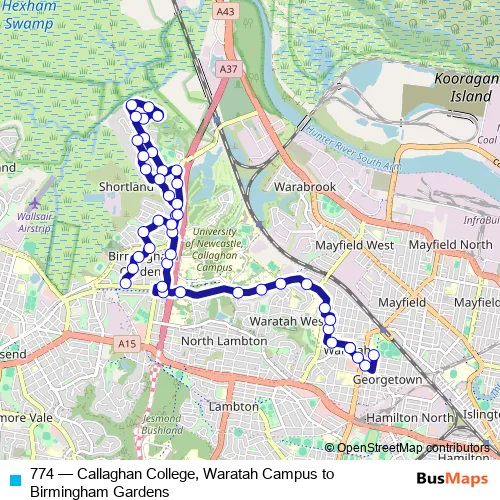 See why over 2 million users trust and consider busmaps.com as the best public transport website. busmaps gives you Newcastle Buses suggested routes, real-time bus tracker, line route maps in Newcastle, and helps to find the closest 774 bus stops near you. No internet available? Download an offline PDF map and bus schedule for the 774 bus to take on your trip.