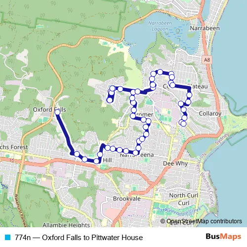 Bus 774n - Oxford Falls to Pittwater House: Full Schedule in Sydney