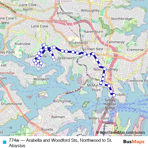 Click here to view the nearest 774w - Arabella and Woodford Sts, Northwood to St. Aloysius bus stop.