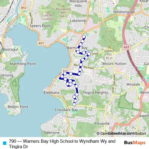 Bus 790 - Warners Bay High School to Wyndham Wy and Tingira Dr Schedule in Newcastle