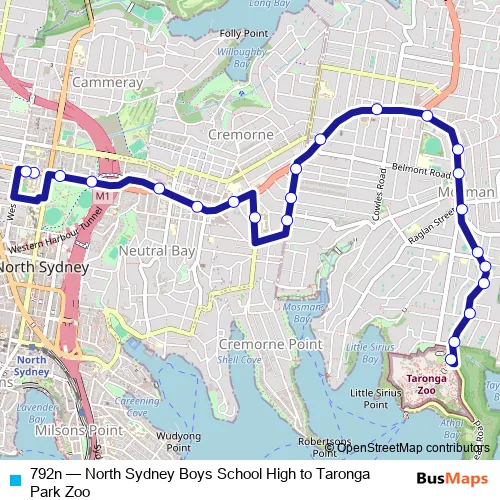 Bus 792n - North Sydney Boys School High to Taronga Park Zoo in Sydney: Stops & Timetable