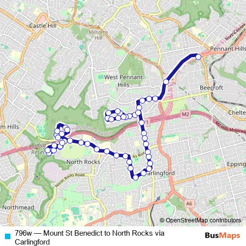 Bus 796w - Mount St Benedict to North Rocks via Carlingford Schedule in Parramatta