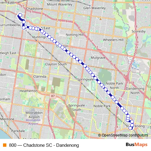 Click here to view the nearest 800 - Chadstone SC - Dandenong bus stop.
