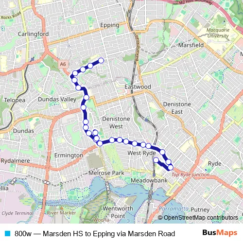 Bus 800w - Marsden HS to Epping via Marsden Road in Parramatta: Stops & Timetable
