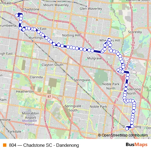 Bus 804 - Chadstone SC - Dandenong Schedule in Melbourne