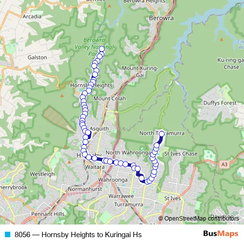 Click here to view the nearest 8056 - Hornsby Heights to Kuringai Hs bus stop.