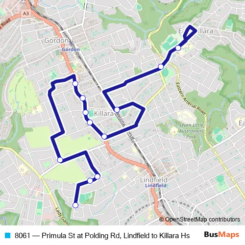 Bus 8061 - Primula St at Polding Rd, Lindfield to Killara Hs in Sydney: Stops & Timetable