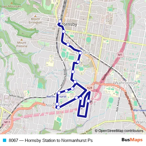 Click here to view the nearest 8067 - Hornsby Station to Normanhurst Ps bus stop.