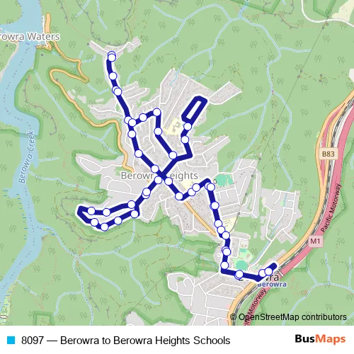 The first stop of the 8097 bus route is Berowra Station, Pacific Hwy and the last stop is Berowra Station, Pacific Hwy. 8097 (Berowra to Berowra Heights Schools) is operational during on weekdays.