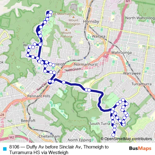 Click here to view the nearest 8106 - Duffy Av before Sinclair Av, Thorneigh to Turramurra HS via Westleigh bus stop.