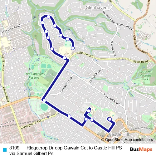 Click here to view the nearest 8109 - Ridgecrop Dr opp Gawain Cct to Castle Hill PS via Samuel Gilbert Ps bus stop.