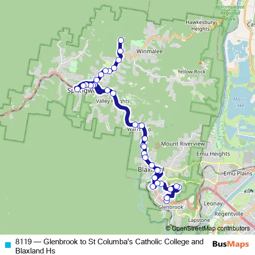 Bus 8119 - Glenbrook to St Columba's Catholic College and Blaxland Hs: Full Schedule in Blaxland
