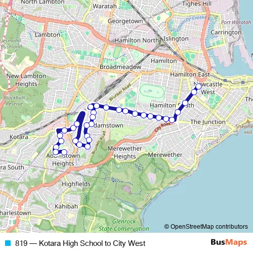 Bus 819 - Kotara High School to City West in Newcastle: Stops & Timetable
