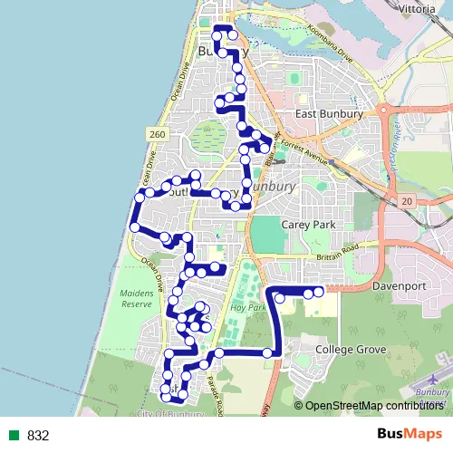 See why over 2 million users trust and consider busmaps.com as the best public transport website. busmaps gives you Bunbury Buses suggested routes, real-time bus tracker, line route maps in Bunbury, and helps to find the closest 832 bus stops near you. No internet available? Download an offline PDF map and bus schedule for the 832 bus to take on your trip.