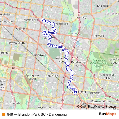 Bus 848 - Brandon Park SC - Dandenong Schedule in Burwood