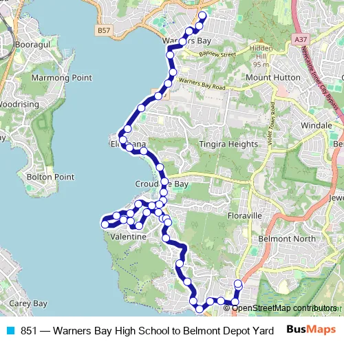 Bus 851 - Warners Bay High School to Belmont Depot Yard in Newcastle: Stops & Timetable