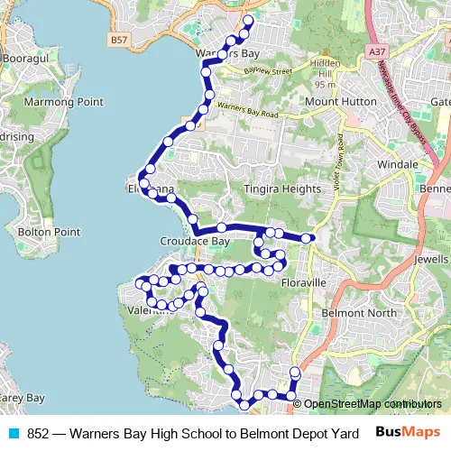 Bus 852 - Warners Bay High School to Belmont Depot Yard in Newcastle: Stops & Timetable
