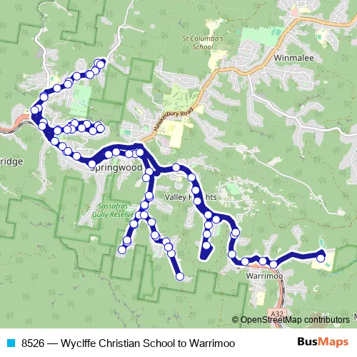 Click here to view the nearest 8526 - Wyclffe Christian School to Warrimoo bus stop.