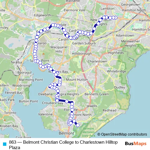 Bus 863 - Belmont Christian College to Charlestown Hilltop Plaza: Full Schedule in Newcastle