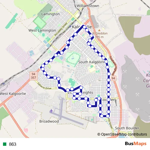 See why over 2 million users trust and consider busmaps.com as the best public transport website. busmaps gives you Kalgoorlie Buses suggested routes, real-time bus tracker, line route maps in Kalgoorlie, and helps to find the closest 863 bus stops near you. No internet available? Download an offline PDF map and bus schedule for the 863 bus to take on your trip.