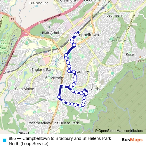 Bus 885 - Campbelltown to Bradbury and St Helens Park North (Loop Service) Schedule in Campbelltown